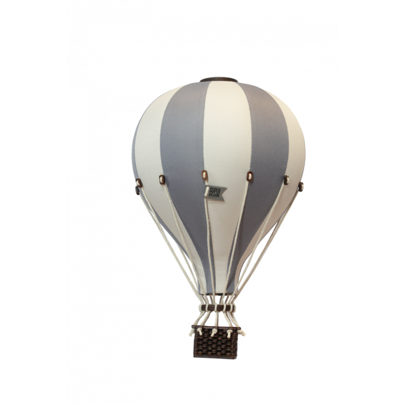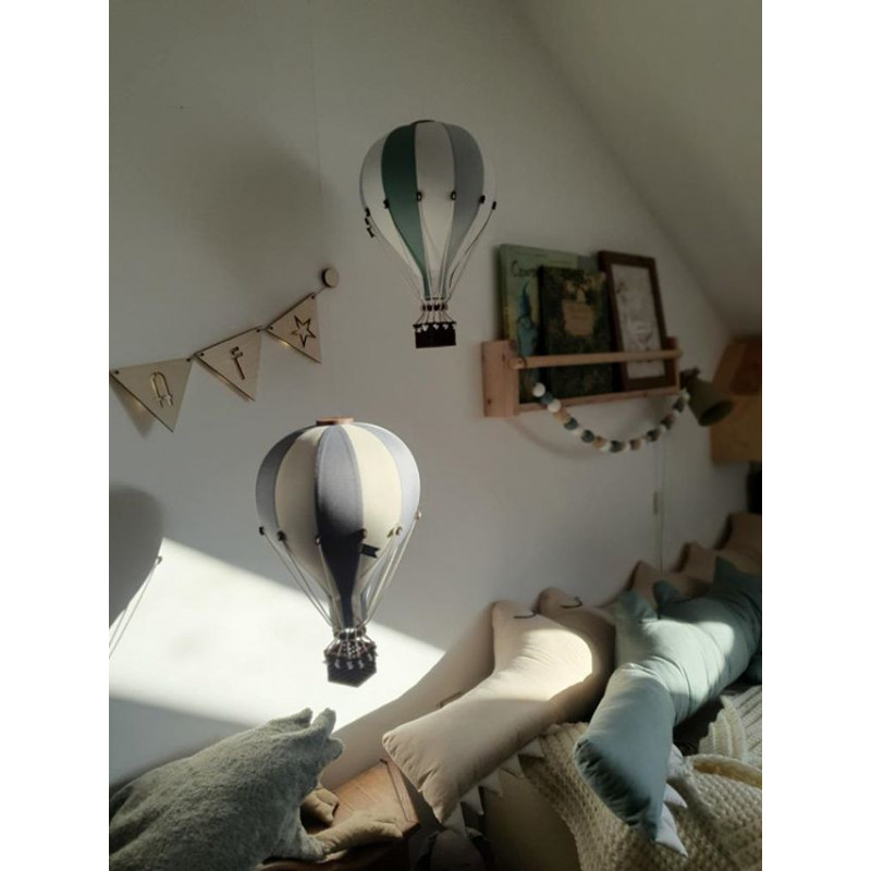 Vacker handgjord luftballong som verkligen gör det där lilla extra med inredningen. Häng den ensam eller flera stycken tillsammans. En garanterat uppskattad gåva. Ballongen är tillverkad i polyester på utsidan och en insida av latex. Fina detaljer som bomullsrep och en korg i betsat trä. Det medföljer en fiskelina att hänga ballongen i.
