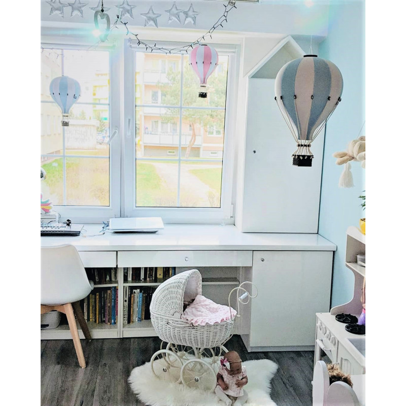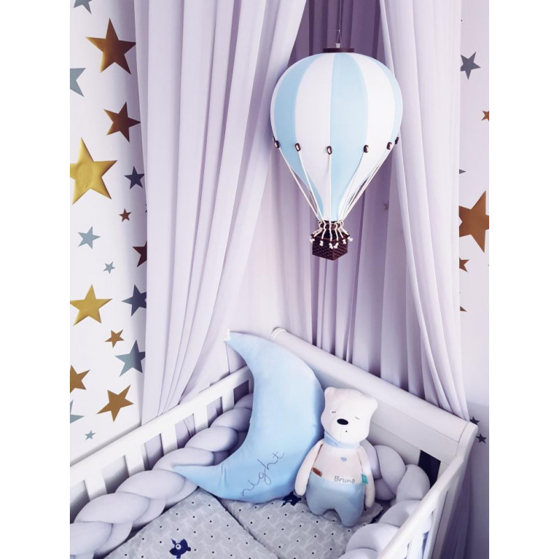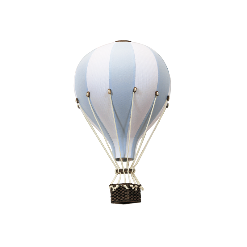 Vacker handgjord luftballong som verkligen gör det där lilla extra med inredningen. Häng den ensam eller flera stycken tillsammans. En garanterat uppskattad gåva. Ballongen är tillverkad i polyester på utsidan och en insida av latex. Fina detaljer som bomullsrep och en korg i betsat trä. Det medföljer en fiskelina att hänga ballongen i.