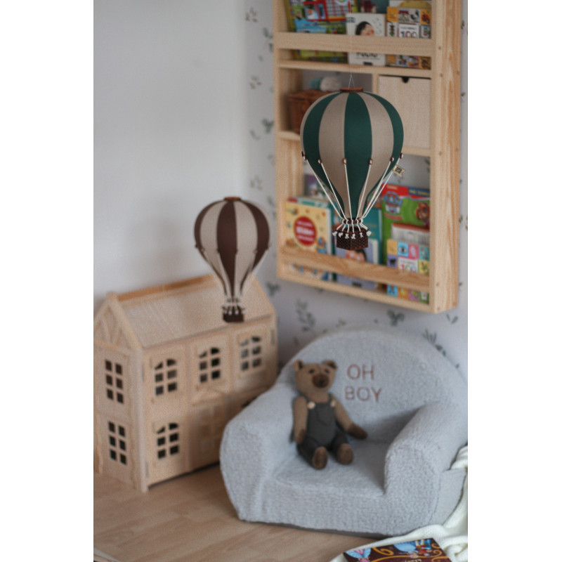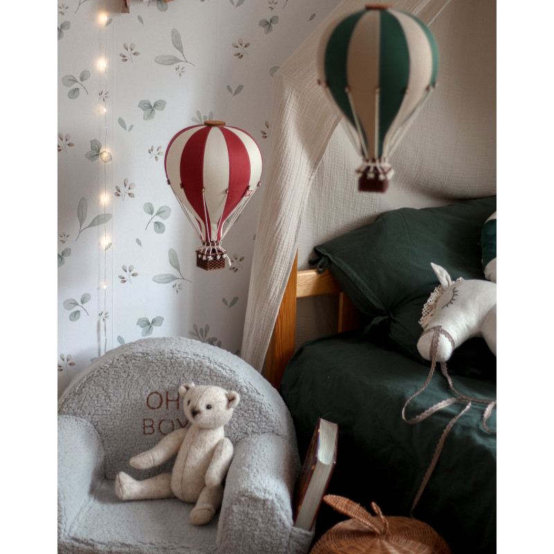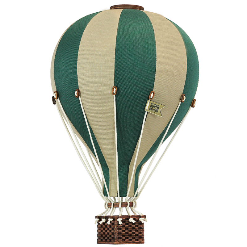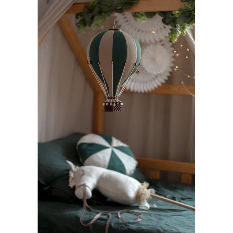 Vacker handgjord luftballong som verkligen gör det där lilla extra med inredningen. Häng den ensam eller flera stycken tillsammans. En garanterat uppskattad gåva. Ballongen är tillverkad i polyester på utsidan och en insida av latex. Fina detaljer som bomullsrep och en korg i betsat trä. Det medföljer en fiskelina att hänga ballongen i.