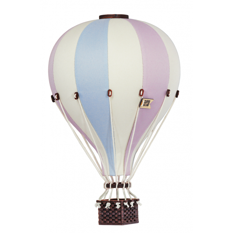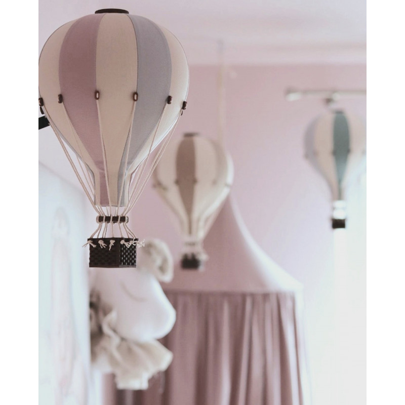 Vacker handgjord luftballong som verkligen gör det där lilla extra med inredningen. Häng den ensam eller flera stycken tillsammans. En garanterat uppskattad gåva. Ballongen är tillverkad i polyester på utsidan och en insida av latex. Fina detaljer som bomullsrep och en korg i betsat trä. Det medföljer en fiskelina att hänga ballongen i.