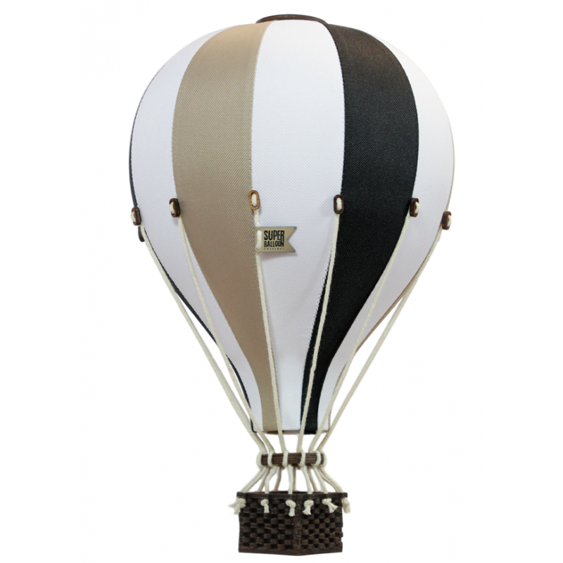 Vacker handgjord luftballong som verkligen gör det där lilla extra med inredningen. Häng den ensam eller flera stycken tillsammans. En garanterat uppskattad gåva. Ballongen är tillverkad i polyester på utsidan och en insida av latex. Fina detaljer som bomullsrep och en korg i betsat trä. Det medföljer en fiskelina att hänga ballongen i.