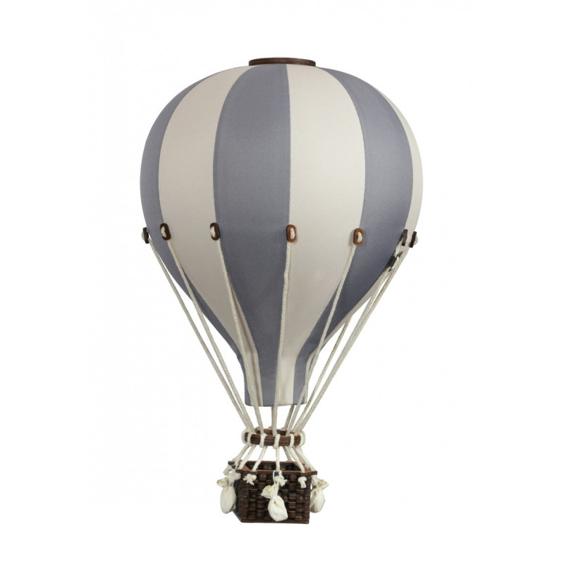 Vacker handgjord luftballong som verkligen gör det där lilla extra med inredningen. Häng den ensam eller flera stycken tillsammans. En garanterat uppskattad gåva. Ballongen är tillverkad i polyester på utsidan och en insida av latex. Fina detaljer som bomullsrep och en korg i betsat trä.