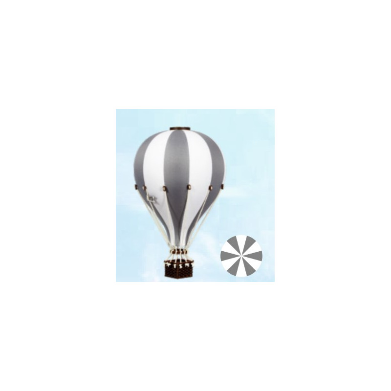 Vacker handgjord luftballong som verkligen gör det där lilla extra med inredningen. Häng den ensam eller flera stycken tillsammans. En garanterat uppskattad gåva. Ballongen är tillverkad i polyester på utsidan och en insida av latex. Fina detaljer som bomullsrep och en korg i betsat trä. Det medföljer en fiskelina att hänga ballongen i.