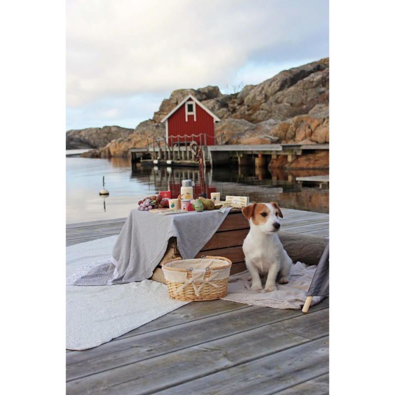 Finns det något mysigare än picknick en varm sommardag. Med detta underbara picknickset inspirerad från provence finns allt du kan önska för den perfekta picknicken. Lägg ut filten på gräset och börja duka fram alla härliga tillbehör. Picknickkorgen är perfekt komponerad för 2 personer. Ät och njut. I den härliga picknickkorgen ingår följande godsaker: 1 picknickkorg 1 duk 2 tallrikar 2 knivar 2 gafflar 2 servetter 2 muggar 1 termos med avtagbart lock(som kan användas som mugg) 2 våfflor 2 kex 2 croissanter 1 kexpaket 1 russinpaket 1 syltburk 1 klase vindruvor 1 brieost 1 korv med kardborrband-delbar 1 päron med kardborrband-delbar 2 jordgubbar