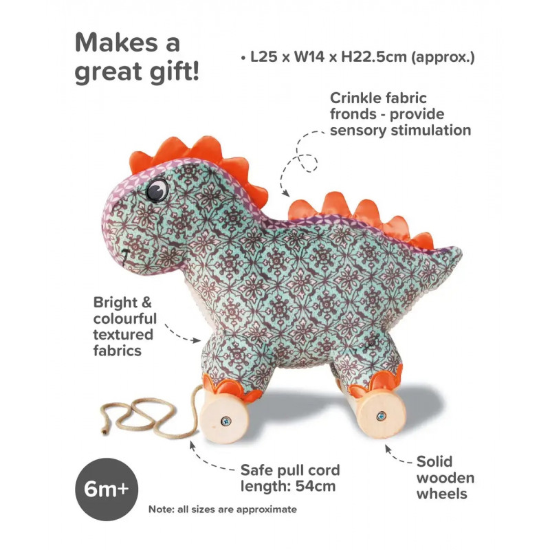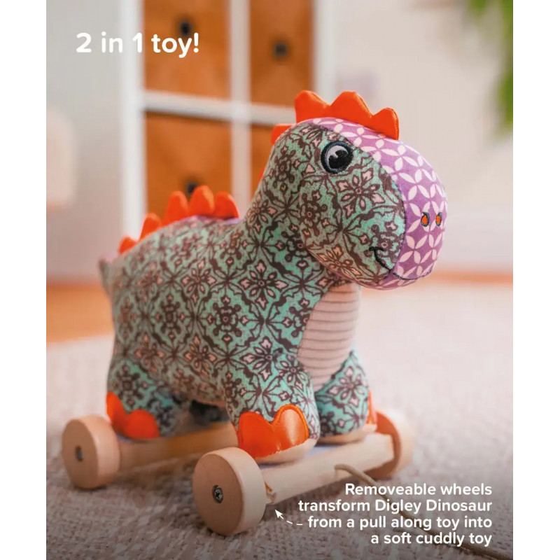 Digley är både en mjuk, kramvänlig dinosaurieleksak och en rolig dragleksak, vilket gör honom till den perfekta lekkamraten från bebismys till småbarnspromenader.