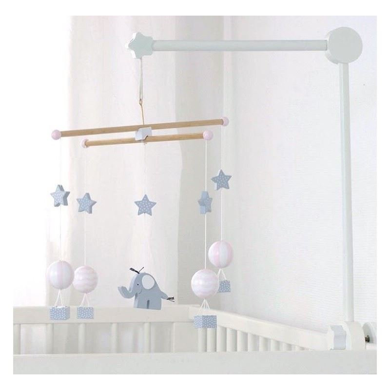Stilren mobilarm i trä dekorerad med stjärnformade detaljer. Fäst valfri söt sängmobil i den fina mobilarmen som du enkelt skruvar fast mot spjälsängen. Mobilarmen passar till alla sorters babymobiler. VARNING. För att förhindra eventuell skada genom att barnet trasslar in sig, avlägsna denna leksak så snart barnet kan nå mobilen.