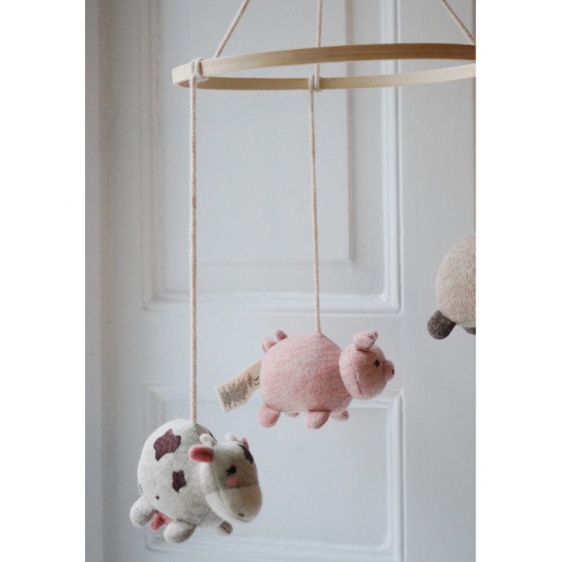 Cotton & Sweets - Sängmobil måne grå/rosa