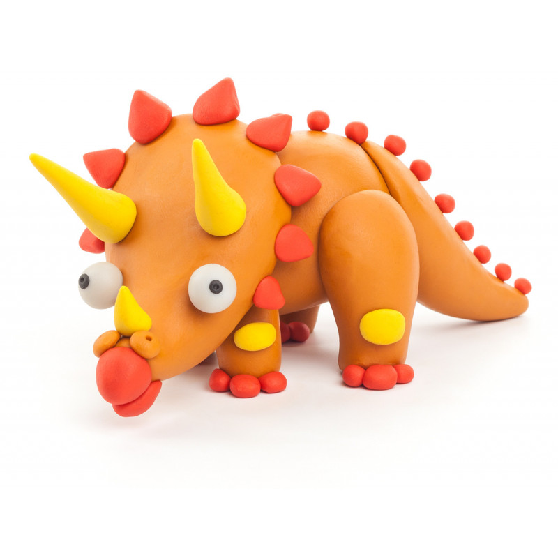 Ett riktigt kul och kreativt set med lufttorkande lera för att skapa en rolig triceratops av som du sen kan leka med eller dela bilder av med dina vänner. Detta set innehåller 5 burkar lätt, mjuk, elastisk och färggrann lera som kan ta form med hjälp av en gratis barnvänlig app med interaktiva video guider som har enkla steg-för-steg instruktioner (på engelska) för hur man skulpterar olika karaktärer. Du låser upp beskrivningen för triceratopsen med en kod som finns inuti paketet. Låt dig inspireras av appen och skapa roliga karaktärer av den mjuka och färgstarka leran, låt figuren lufttorka i 24 timmar så kan du sen leka med den precis som en leksak eller dela bilder på dina skapelser med dina vänner. Guiden med steg-för-steg instruktionen visar alla grundläggande tekniker för att skulptera i lera och snart kommer barnen längta efter att skapa sina helt egna figurer. Leran är lufttorkande, klibb-fri, giftfri, innehåller inget vete och har klara, livfulla färger som går att blanda ihop. Tvätta händerna efter användning och undvik att leran får kontakt med mun, ögon, mat eller dryck, vatten, fukt samt eld.