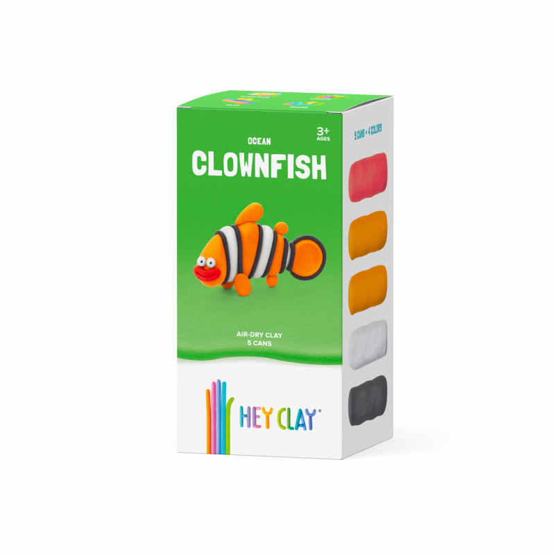 Ett riktigt kul och kreativt set med lufttorkande lera för att skapa en rolig clownfisk av som du sen kan leka med eller dela bilder av med dina vänner. Detta set innehåller 5 burkar lätt, mjuk, elastisk och färggrann lera som kan ta form med hjälp av en gratis barnvänlig app med interaktiva video guider som har enkla steg-för-steg instruktioner (på engelska) för hur man skulpterar olika karaktärer. Du låser upp beskrivningen för clownfisken med en kod som finns inuti paketet. Låt dig inspireras av appen och skapa roliga karaktärer av den mjuka och färgstarka leran, låt figuren lufttorka i 24 timmar så kan du sen leka med den precis som en leksak eller dela bilder på dina skapelser med dina vänner. Guiden med steg-för-steg instruktionen visar alla grundläggande tekniker för att skulptera i lera och snart kommer barnen längta efter att skapa sina helt egna figurer. Leran är lufttorkande, klibb-fri, giftfri, innehåller inget vete och har klara, livfulla färger som går att blanda ihop. Tvätta händerna efter användning och undvik att leran får kontakt med mun, ögon, mat eller dryck, vatten, fukt samt eld. Innehåll: 5 burkar lufttorkande lera (totalt ca 75 g lera i 4 färger) samt ett informationsblad med bilder på fisken, de olika stegen som krävs för att skulptera den, en länk till där ni kan hämta appen och koden som låser upp appens guide för hur man skapar clownfisken. Från +5 år. (Vuxen tillsyn krävs från +3 år)