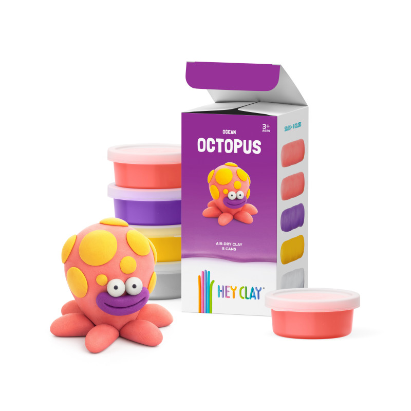 Ett riktigt kul och kreativt set med lufttorkande lera för att skapa en rolig bläckfisk av som du sen kan leka med eller dela bilder av med dina vänner. Detta set innehåller 5 burkar lätt, mjuk, elastisk och färggrann lera som kan ta form med hjälp av en gratis barnvänlig app med interaktiva video guider som har enkla steg-för-steg instruktioner (på engelska) för hur man skulpterar olika karaktärer. Du låser upp beskrivningen för bläckfisken med en kod som finns inuti paketet. Låt dig inspireras av appen och skapa roliga karaktärer av den mjuka och färgstarka leran, låt figuren lufttorka i 24 timmar så kan du sen leka med den precis som en leksak eller dela bilder på dina skapelser med dina vänner. Guiden med steg-för-steg instruktionen visar alla grundläggande tekniker för att skulptera i lera och snart kommer barnen längta efter att skapa sina helt egna figurer. Leran är lufttorkande, klibb-fri, giftfri, innehåller inget vete och har klara, livfulla färger som går att blanda ihop. Tvätta händerna efter användning och undvik att leran får kontakt med mun, ögon, mat eller dryck, vatten, fukt samt eld. Innehåll: 5 burkar lufttorkande lera (totalt ca 75 g lera i 2 färger) samt ett informationsblad med bilder på bläckfisken, de olika stegen som krävs för att skulptera den, en länk till där ni kan hämta appen och koden som låser upp appens guide för hur man skapar bläckfisken. Från +5 år. (Vuxen tillsyn krävs från +3 år)