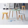 En fin pall att använda till Flexa lekbord. När barnet blir äldre kan man använda den till sängbord eller som en färgklick i hemmet. Lackad MDF och ben i askträ.