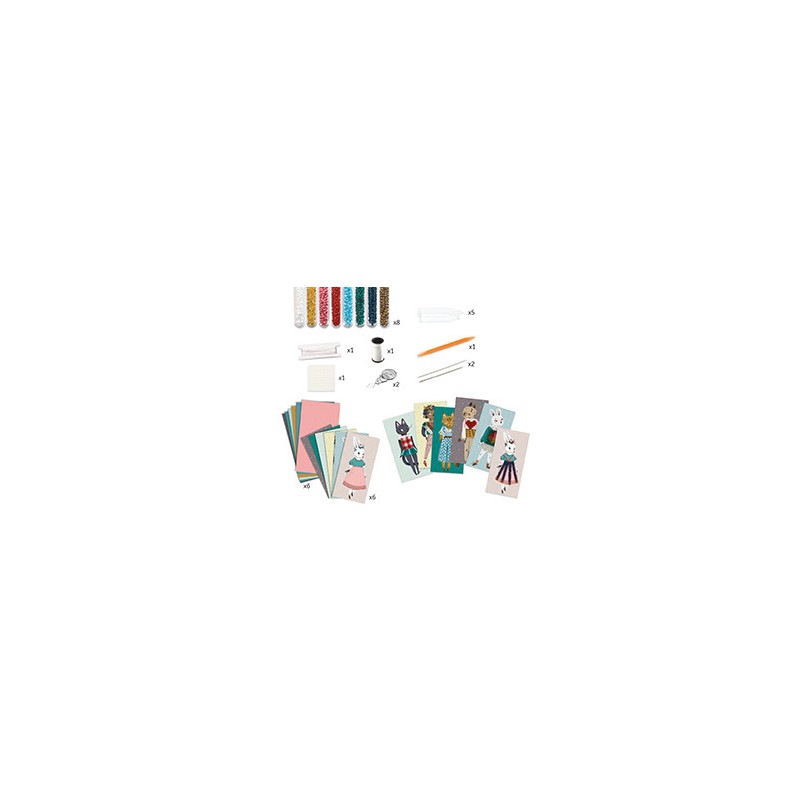 Superroligt pärlpyssel att testa på. I detta fantastiska set får du lära dig hur du ska använda nål och tråd ihop med små vackra pärlor. Här får du lära dig hur du ska väva samman pärlorna och sedan dekorera katternas kläder. Mysigt pyssel att koppla av med. Förpackningen innehåller 6 olika motiv, 8 olika färger med pärlor, nål, tråd etc. Varje motiv är ca 7,5 x 14 cm. Förpackningsstorlek