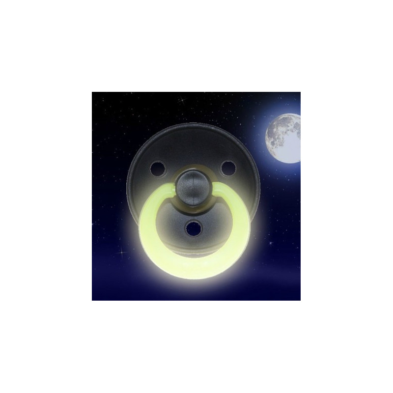 Just denna nappen har en självlysande ring, detta gör det enkelt att hitta nappen på natten!!