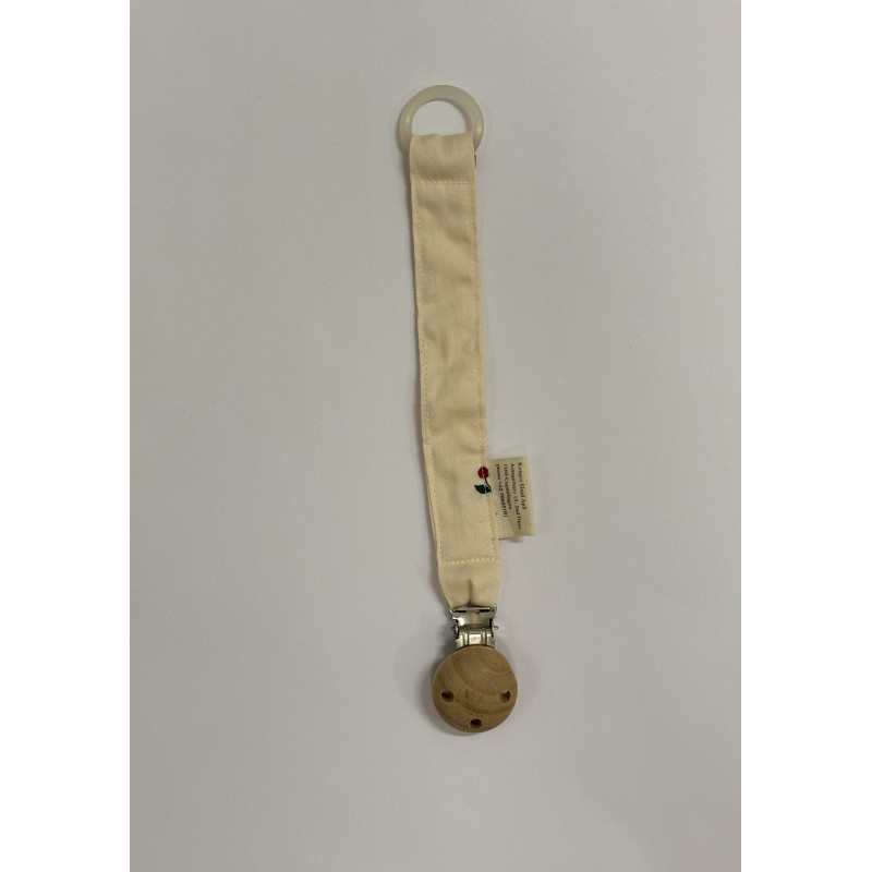 Den här praktiska napphållaren från Konges slöjd gör att du inte behöver leta efter barnets napp, dessutom riskerar inte nappen att ramla ner på marken och bli smutsig. Fäst nappen med ett metallclips på tröjan, den lilla ringen passar dom flesta napparna.