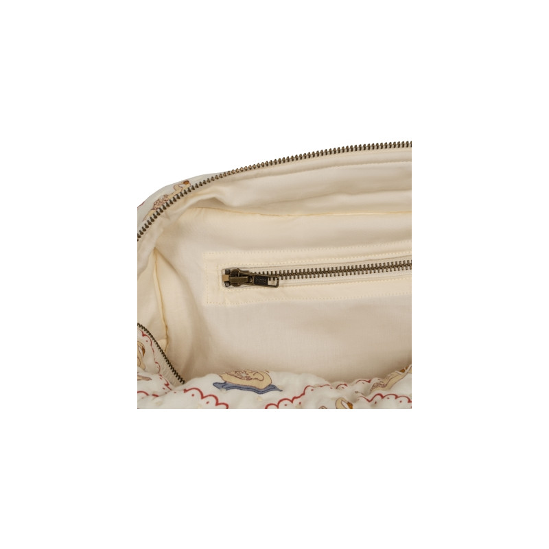 En härlig quiltad necessär för de moderna föräldrarna som vill ha något praktisk och snyggt till nappar, snuttefiltar och annat som barnet behöver. Är även fin att använda som förvaring till toalettartiklar, smink och annat. Necessären har plastbelagd insida.