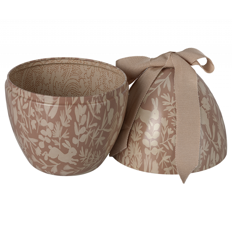 Maileg påskägg har ett vackert nytt all-over tryck. Ta en ordentlig titt på trycket och se om du kan hitta de olika djuren. Ägget kommer med en stor mjuk rosett på toppen som ger ägget ett exklusivt utseende.