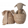 Inuti detta metallägg, tryckt med ett vackert tryck och en stor mjuk rosett på toppen, hittar du ett litet mjukt lamm. En perfekt present till de små. Lammet har magneter i händerna så att det kan hållas runt ägget.