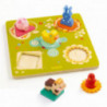 Ett kul och färgglatt pussel för de yngsta med 5 geometriskt formade pusselbitar som sitter fast vid varsin tredimensionell träfigur av ett bondgårdsdjur. Träfigurerna gör det enkelt för barnet att få grepp om pusselbiten och kan dessutom användas i andra lekar. Pusslet är tillverkat i trä målat med giftfria färger och kommer i en låda som gör det enklare att förvara pusslet. Storlek på själva pusslet: 21 x 21 x 5,5 cm. Från 12 mån