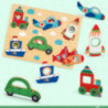 Ett kul reliefpussel i trä med 6 pusselbitar som föreställer olika farkoster - lok, flygplan, raket, båt, bil och ubåt. Varje pusselbit är formad som siluetten på en farkost, är tjock nog att stå upp av sig själv om du ställer den på kanten och har ett utskuret fönster som både underlättar för barnet att ta upp biten och dessutom visar huvudet på djuret som kör farkosten när biten ligger på plats. Med kul överraskningar under pusselbitarna och många möjligheter till att öva upp både finmotorik och fantasi då pusselbitarna också funkar utmärkt att leka med separat. Tillverkat i trä utan knoppar på bitarna och målat med giftfria men färgglada färger. Storlek på pusslet: 30 x 21 x 1 cm. Från 18 månader. Storlek på pusslet: 30 x 21 x 1 cm.