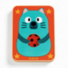 Ett roligt pussel i trä med tre nivåer med varsin pusselbit som alla har en öppning till nästa nivå. Genom att plocka bort en bit i taget upptäcker barnet att kattens boll är nyckelpigans kropp, nyckelpigans mun blir koltrastens näbb och koltrastens boll blir kycklingens äggskal. Pusselbitarnas utsågade öppningar gör det enkelt att få grepp om pusselbitarna, även för riktigt små händer. Tillverkat av FSC® certifierat trä och målat i giftfria färger. Innehåll: Basplatta med tre nivåer, 3 formade pusselbitar i gradvis ökande storlek, 1 förvaringsask. Från +12 månader. Storlek på pusslet: ca 12 x 9 x 2 cm.