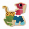 Ett set med kul magneter som föreställer 6 olika djur delade i fyra bitar - leopard, panda, fågel, groda, noshörning och gorilla. Sätt ihop alla fyra bitar för ett djur eller använd din fantasi till att mixa bitarna till nya roliga varelser. Bitarna är tillverkade i trä och har trekantiga hack och utskott för att göra det lättare att placera dem rätt i förhållande till varandra. Varje djur har en distinkt färg för att göra det lättare att hitta rätt bit. Fäster på alla magnetiska ytor, till exempel kylen. Innehåller 24 delar. Från 2 år.