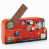 Ett kul pussel med 16 bitar. Motivet är i fina färger och föreställer en brandbil som ryckt ut till en brand. Förpackad i en brandbilsformad kartong med rörlig stege. Funkar också som trevlig dekoration i barnrummet.