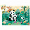 Ett vackert 24-bitars pussel där motivet föreställer en panda med sitt barn som sitter och vilar vid en liten damm i ett vackert asiatiskt landskap med berg, bambu och diverse vilda djur. Asken som pusslet kommer i är formad som siluetten av en panda, och kan bli en snygg dekoration i barnrummet då den kan stå stadigt på högkant. Pusslet håller en hög kvalitet och är tillverkat av FSC®️ certifierad kartong med stora, lätthanterliga bitar som tål att läggas om och om igen. Storlek på det färdiga pusslet: 30 x 42 cm. Från +3 år.