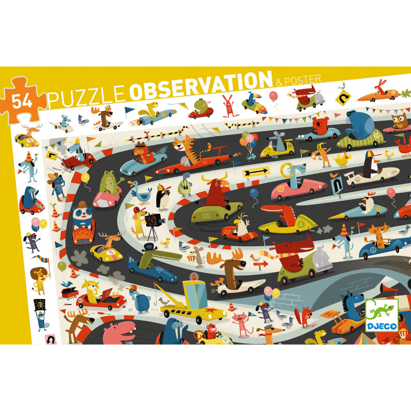 Pusslet för den biltokige är här! Massor med coola och häftiga bilar, för att inte tala om vilka som kör dem! Kul detaljer och härligt färger. Runt huvudbilden finns en ram med bilder på detaljer ur motivet, kan du hitta var alla detaljerna är? Pussel med 54 bitar. Detta är en FSC®️ MIX certifierad produkt.
