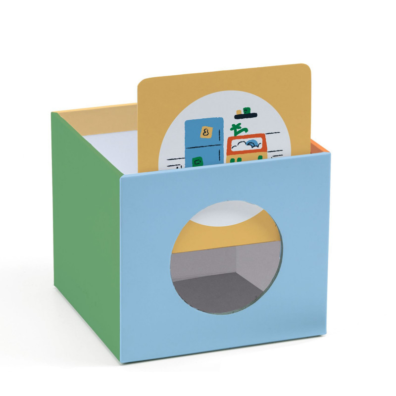 Ett kul och pedagogiskt spel om observation och sortering där barnet ska gruppera olika saker och möbler efter deras plats i hemmet eller en kategori. Vilka saker finns vanligtvis i köket? Vilka saker rullar? Ett kort i taget sätts på plats bakom den runda öppningen i lådan så att attributet syns genom hålet och sedan ska barnet leta efter de polletter som uppfyller kriteriet. De polletter som ser ut att stämma stoppas i lådans springa, som i en sparbössa, och när barnet tycker att hen är klar tas polletterna ut ur lådan ut så att ni kan kontrollera om det är rätt. Korten med kriterier har bilder av de motsvarande sakerna på sin baksida, så ni kan dra ut kortet från lådan och kolla svaret mot bilderna. En kul introduktion till grunderna för sortering, organisering och att städa upp/ställa iordning. Spelets delar är tjocka samt enkla att hantera och den snygga lådan är kul att leka med som en sparbössa. I spelreglerna finns också en förteckning på vad de olika korten med kriterier ska föreställa, till exempel: saker som vanligtvis finns i garaget, saker som är möbler och saker som ger ljus. Ett kul sätt att hjälpa barnet utveckla sin observationsförmåga. Detta spel finns också i motsvarande versioner med leksaker (geometriska former, artikel DJ08145) och djur (kännetecken, artikel DJ08145). Tillverkad av FSC® certifierad kartong. Innehåll: 12 dubbelsidiga kriteriekort (svaret på baksidan), 30 stora polletter med bilder på saker, 1 låda med lock som har öppning för polletterna, spelregler och instruktioner på tio språk inklusive svenska. Från +3 till 6 år. För 1 barn (och en vuxen).