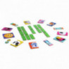En rolig variant på memory spel där spelarna får samarbeta om att hitta delarna till ett antal djuransikten. Varje djuransikte består av tre avlånga plattor och i början av spelet läggs den mittersta plattan av alla djuren i en stor ring medan resten av plattorna vänds med framsidan nedåt, blandas och läggs i en ruta med tre rader och 8 plattor i varje rad (om ni använder alla djuransikten) i mitten av ringen. Den första spelaren tar polletten med zebran och lägger den på lejonets platta för att sedan vända upp två av de nedvända plattorna inuti cirkeln. Om någon av dessa plattor hör ihop med lejonet så får spelaren lägga dessa bredvid lejonets mittersta platta. Om ingen av de uppvända plattorna hör till lejonet vänder spelaren tillbaka dem, flyttar zebran och flyttar den till nästa djur medurs i ringen och turen går vidare till nästa spelare som då ska försöka hitta de saknade bitarna till djuransiktet som polletten ligger på. Ni får diskutera med varandra vilken av brickorna som borde vändas, men det är spelaren vars tur det är som bestämmer i slutändan. Om polletten hamnar på ett färdigt djurhuvud är det bara att flytta den till nästa ofärdiga djur i cirkeln. När polletten hamnar på ett halvkomplett djurhuvud får denna spelare bara vända på en av plattorna. Om ni inte har lyckats komplettera alla djurhuvuden innan polletten har gått fyra rundor runt ringen så förlorar ni alla spelet! Men när alla djurhuvuden är kompletta är spelet vunnet! Den första gången ni spelar kan ni börja med till exempel 8 djurhuvuden och sedan öka antalet efter varje spel. För experterna finns en version där ni bara får tre rundor runt ringen på er att komplettera alla de 12 djur ansiktena. Ett spel om minne och lagarbete där ni har kul medan ni ser djur ansiktena sakta sättas samman. Tillverkat av FSC®️ certifierad kartong och papper. Innehåll: 12 djuransikten i 3 delar (en större mittplatta och två mindre sido-plattor, totalt 36 st), 4 runda polletter (med en zebra, en gasell, en giraff och en groda), spelregler på tio språk inklusive svenska. Speltid: ungefär 15 minuter. Från +5 till 10 år. För 2-4 spelare.