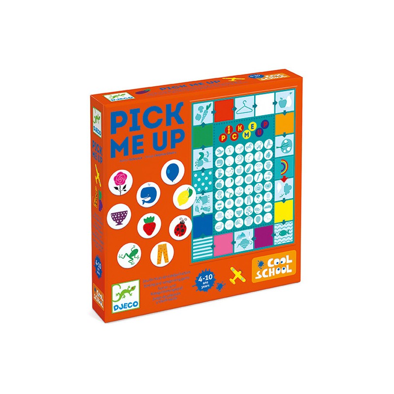 En tiger, strumpor, en vattenkanna, plommon, en gul fjäril ... vilka kategorier hamnar dessa bilder i? Detta är ett roligt spel med sortering och kategorisering där barn kan ha kul medans de får hjälp att utveckla sina språkliga, logiska, och observations färdigheter. För att spela så väljer alla varsin spelpjäs och polletterna delas ut så att alla spelare har lika många, sedan slår en efter en med tärningen och rutan spelaren hamnar på bestämmer kategorin på de polletter som spelaren får lägga ner på motsvarande symbol i mitten av spelplanen. På spelplanen finns det 8 rutor som anger vilken färg saken på poletten ska ha, en ruta med en regnbåge som låter spelaren själv välja en färg samt 11 rutor med bilder som står för olika kategorier, till exempel: kläder, prickiga saker, frukt som växer på träd och saker som hör hemma i vatten. Om en spelare hamnar på en ruta men inte har kvar några polletter med saker som motsvarar rutans instruktioner så får hen stå över sin tur att lägga ner något och turen går vidare till nästa spelare. Den spelare som först lyckas lägga ner alla sina polletter på spelplanen vinner omgången. Innehåll: 1 spelplan, 1 kategori-påminnelse kort som visar vilka polletter som hör till vilken kategori, 48 polletter med små bilder, 4 spelpjäser, 1 tärning samt ett häfte med spelregler på 10 språk. Speltid: ungefär 10 minuter. Från 4 till 10 år. För 2-4 spelare.