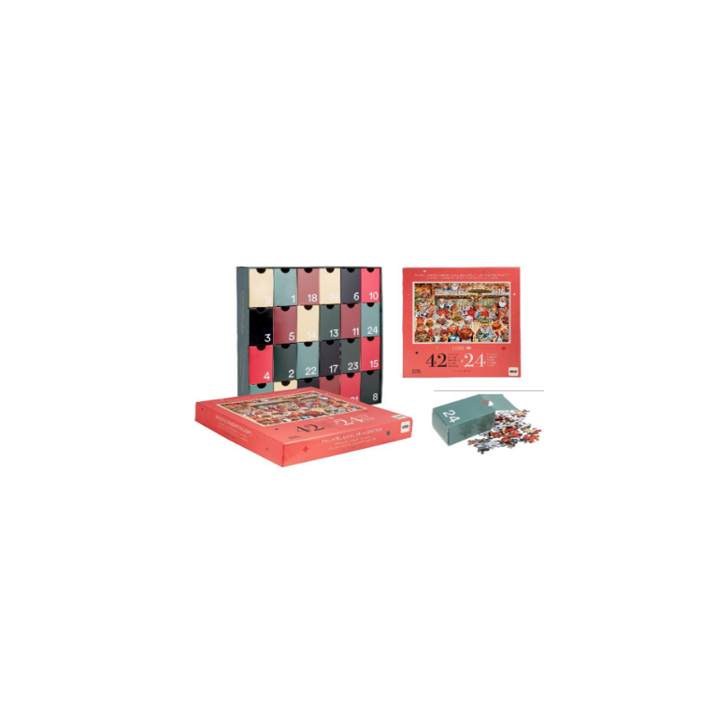 En spännande pusselkalender, där 42 bitar avslöjas varje dag i väntan på julen. Pusselbitarna är numrerade på baksidan och packade i ordning i de 24 små askarna i julkalendern, så att en lagom stor del av pusslet växer fram varje dag. På julafton får man njuta av hela pusslet på 1008 bitar, när de sista bitarna lagts och det fina motivet är komplett! Det lagda pusslets storlek är 68 x 48 cm. I Pelikos pussel förenas omsorgsfullt utvalda motiv med nordisk formgivning och produktion.