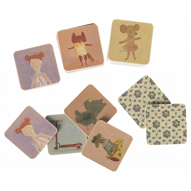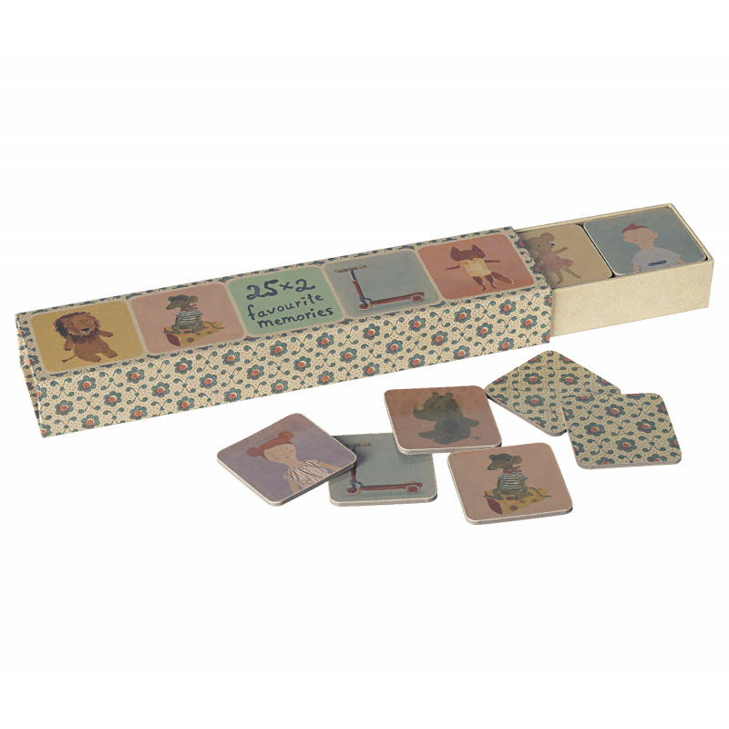 Ett klassiskt minnesspel med 25 olika illustrationer tecknade av Dorthe Mailil. Inspirationen kommer från olika föremål som Maileg producerat genom åren.