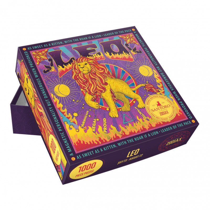 Zodiax 1000-bitars pussel är ett retro-coolt pussel som erbjuder en personlig touch för humoristisk självreflektion och fungerar som en perfekt gåva för alla åldrar och kön. Det är en idealisk och rolig födelsedagspresent för hängivna pusselentusiaster, astrologiintresserade eller för alla som älskar cool konst!