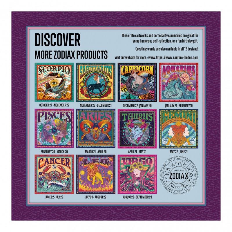 Med en djärv färgpalett och slående grafik som skiljer sig från andra pussel på marknaden, har varje individuellt stjärntecken en unik konst inspirerad av 1970-talets skivomslag i ljusa, psykedeliska färger. Komplett med (ibland dolda) roliga personlighetsattribut, kommer konsten att få dig att skratta när du bit för bit avslöjar hela designen.