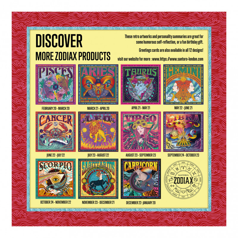 Med en djärv färgpalett och slående grafik som skiljer sig från andra pussel på marknaden, har varje individuellt stjärntecken en unik konst inspirerad av 1970-talets skivomslag i ljusa, psykedeliska färger. Komplett med (ibland dolda) roliga personlighetsattribut, kommer konsten att få dig att skratta när du bit för bit avslöjar hela designen.