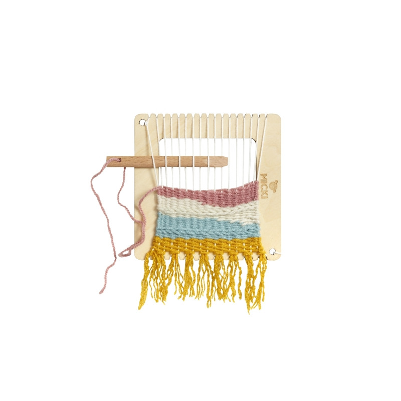 Vävramen är en klassisk träleksak från Micki! Denna mindre variant är nätt och smidig att ta med på familjens äventyr.