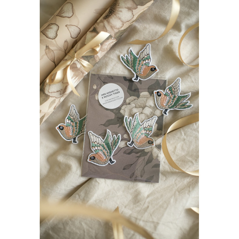 Mrs Mighetto x Patchy Tiger har tillsammans tagit fram fyra vackert designade patchar. Välj bland den stora flygande ponnyn, kompisparet kaninen och rådjuret, de spegelvända sparvarna eller varför inte ett fempack med hela gänget? Gör din personliga t-shirt, jacka, hatt, väska, örngott eller något helt annat. Var kreativ ock låt fantasin flöda!