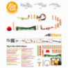 Ett roligt set för en spännande upptäckarlek där rörelseenergi spelar huvudrollen. Bygg upp spännande hinderbanor och försök få kedjereaktionerna att följa med genom hela banan. Sätt ihop en bana utifrån en av de tre designerna i instruktionshäftet eller kom på en egen och följ sen hur rörelseenergin rör sig genom banan och välter/vrider/sätter delar i rullning till följd av tidigare reaktioner. Lyckas du bygga en bana där rörelseenergin tar sig igenom hela banan på första försöket? - det är inte lätt! Bygg upp banan på olika sätt och se hur du kan placera allt för bästa resultat. Banan kan byggas upp på mängder av olika sätt och kan sättas ihop med alla andra delar i Zig & Go serien till riktigt episka banor. Upptäck, experimentera och testa på nytt! Setet är tillverkat i trä och innehåller två metallkulor och en ringklocka i metall. Innehåller 25 delar och en 16-sidig instruktionsbok med bilder. Det fins en officiell video upplagd på YouTube som du kommer till med hjälp av en QR-kod på paketet. Från 8 till 99 år