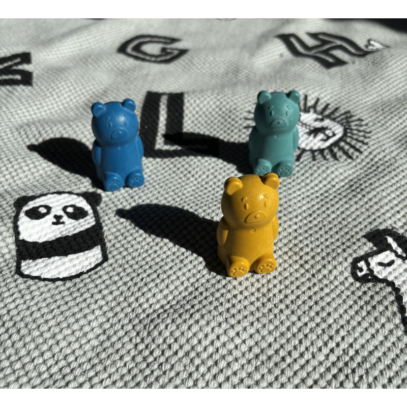 9-pack vaxkritor med kul form av små djur i olika färger.