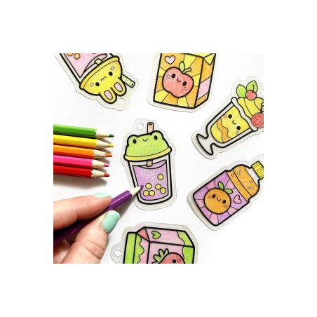 6 förskurna kawaii-berlocker med drinktema att färglägga