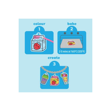 Barn kan skapa sitt alldeles egna, specialdesignade berlockarmband med detta roliga och kreativa kit. Med sex kawaii-berlocker med drinktema att färglägga och krympa ihop, är detta den perfekta aktiviteten för barn som älskar allt som är gulligt.
