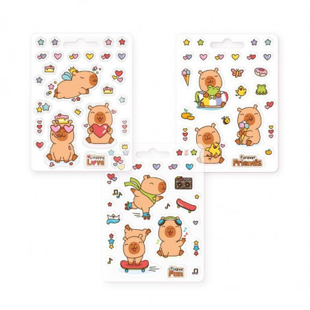 Dessa set med 26 högkvalitativa och glansiga klistermärken i olika storlekar och med roliga kapybarafigurer kan göra varje kreativt projekt till ett riktigt blickfång! Den transparenta kanten och den lätt upphöjda ytan ger de noggrant designade klistermärkena ett stilfullt uttryck – perfekt för att dekorera och skapa med stil.