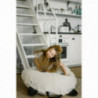Binis saccosäckar är utformade för barn att sitta, ligga och leka i. Säcken är tillverkad i organisk bomull som är väldigt mjuk, tyget har inte genomgått några kemiska processer och innehåller ingen silikon. Den extra innerpåsen innehåller polypropylenfyllning som lätt formar sig efter barnets kropp. Pandatrycket är vattenbaserat med en speciell screen-tryck metod. Stoppningen består av giftfria EPS-kulor och är packade i en innerpåse för att lätt kunna tas ut vid tvätt Mått: 80 x 80 x 110 cm Material: Organisk och hållbar bomull Tvättråd: Yttertyget kan tvättas i maskin i 30?C