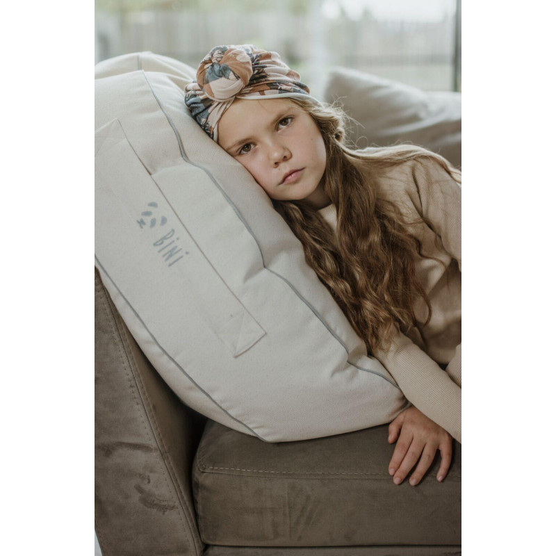 BINI POUF är en bekväm sittplats för avkoppling. Den är tillverkad av ekologisk bomull och behaglig att röra vid. Materialet har inte genomgått några kemiska processer och innehåller inte silikon. Trycken görs med skärmtryck – med ekologiska vattenfärger. Den inre extra påsen är fylld med polypropylengranuler, vilket anpassar sig perfekt efter kroppen och säkerställer en bekväm sittställning. Bini kan tvättas i tvättmaskinen (vi rekommenderar 30 grader), ta bara bort den inre påsen och lägg överdraget i tvättmaskinen. Mått: 72 x 18 cm.