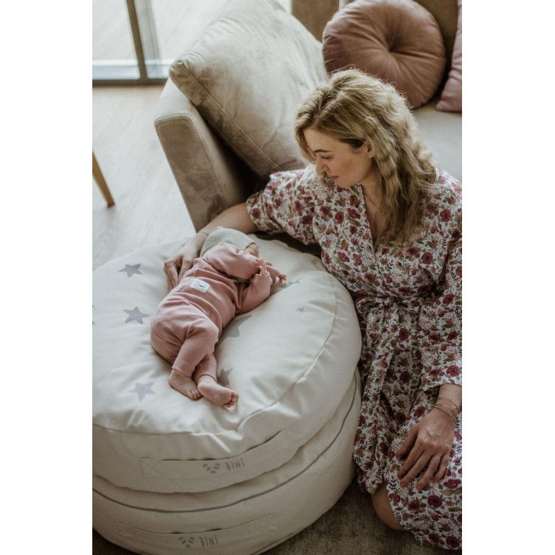 BINI POUF är en bekväm sittplats för avkoppling. Den är tillverkad av ekologisk bomull och behaglig att röra vid. Materialet har inte genomgått några kemiska processer och innehåller inte silikon. Trycken görs med skärmtryck – med ekologiska vattenfärger. Den inre extra påsen är fylld med polypropylengranuler, vilket anpassar sig perfekt efter kroppen och säkerställer en bekväm sittställning. Bini kan tvättas i tvättmaskinen (vi rekommenderar 30 grader), ta bara bort den inre påsen och lägg överdraget i tvättmaskinen. Mått: 72 x 18 cm.