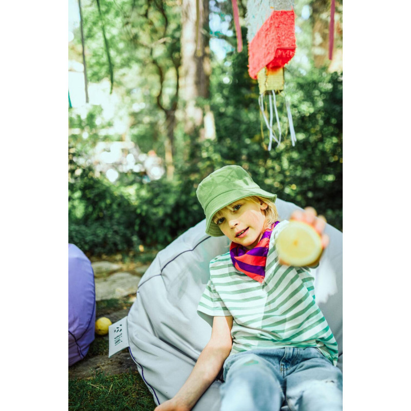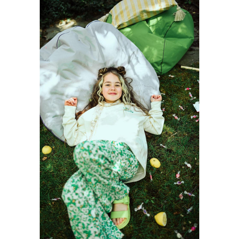 Binis saccosäckar är utformade för barn att sitta, ligga och leka i. Säcken är tillverkad i organisk bomull som är väldigt mjuk, tyget har inte genomgått några kemiska processer och innehåller ingen silikon. Den extra innerpåsen innehåller polypropylenfyllning som lätt formar sig efter barnets kropp. Pandatrycket är vattenbaserat med en speciell screen-tryck metod. Stoppningen består av giftfria EPS-kulor och är packade i en innerpåse för att lätt kunna tas ut vid tvätt Mått: 80 x 80 x 110 cm Material: Organisk och hållbar bomull Tvättråd: Yttertyget kan tvättas i maskin i 30?C
