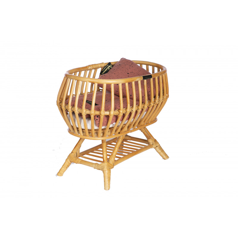 Ett snyggt, ekologiskt och GOTS certifierat bädd set för docksängen, med mönster av svarta stänk på terrakotta röd bakgrund. Setet kommer i en påse av organza och innehåller ett tjockt täcke samt en lätt stoppad kudde. Tillverkat av 100% ekologisk bomullstyg stoppat med 100% polyester fiber. Tvättas i maskin på 40°C och hängtorkas vid behov. Storlek: Kudde - ca 20 x 23 cm, Täcke - ca 40 x 30 cm.