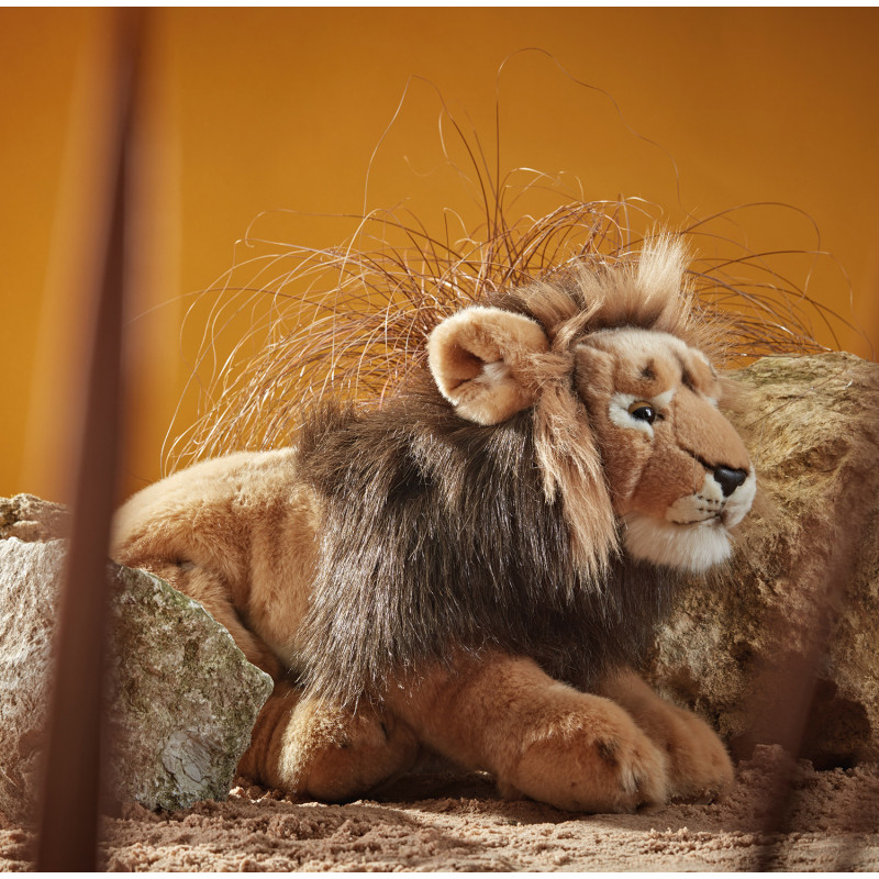 Det brukar sägas att lejonet är djurens konung, och denna majestätiska figur är en både imponerande och charmig invånare på savannen.  Med sin imponerande man och och naturtrogna detaljer blir detta stora, mjuka lejon lätt kungen av dina mjukdjur.  Med sin gosiga päls och mjuka kropp är detta lejon också en bra kompis vid mysstunder och när du behöver en kram.   Bör ej lämnas utan uppsikt i sängen hos små bebisar. . .  Storlek: ca H24 x B15 x D45 cm