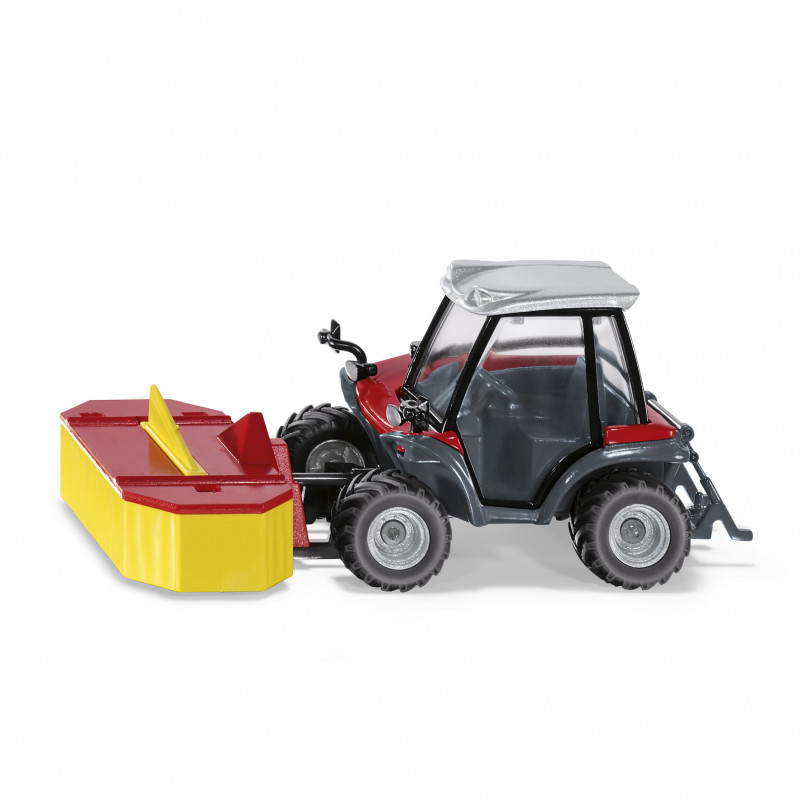 Det kompakta och mycket manövrerbara redskapet från den schweiziska tillverkaren är utrustat med en främre gräsklippare. Tack vare de universella SIKU-kopplingarna kan släpvagnar och redskap från SIKU-jordbruksområdet. Monteras fram och bak.